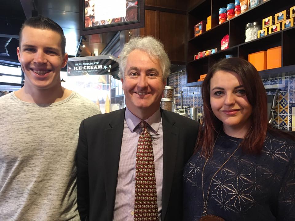 In Wollongong, announcing NSW Labor’s policies to protect workers from exploitation and wage theft. Adam Searle with Sara and Aiden – young local workers sharing their experiences.
