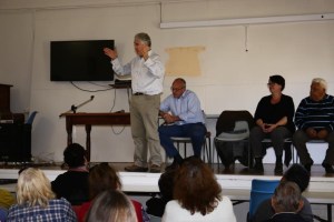 Adam Searle with Labor Leader Luke Foley and Shadow Minister for the Environment Penny Sharpe at a community meeting in Breeza to hear from local property owners, farmers, community stakeholders and representatives of the local Indigenous community about the damaging effect the open cut mine will have on the Liverpool Plains.